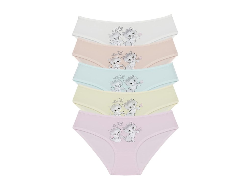 Dětské bavlněné kalhotky Cat friends. Dětské kalhotky klasického střihu s obrázkem koťátek a nápisem 'Cat friends'. Použitý materiál je jemný a poddajný na dotek.