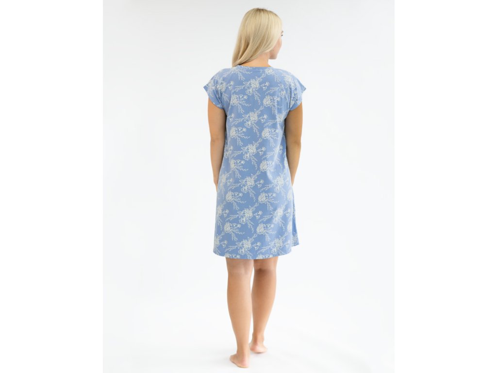 Základem kvalitního spánku je vaše pohodlí, ke kterému vám pomůže i pohodlné noční prádlo. Naše dámská noční košilka s krátkým rukávem je ideální volbou pro každou milovnici kvalitních materiálů a pohodlných střihů. Noční košilka má délku nad kolena, výraznější květinový vzor, kruhový výstřih, který neškrtí a materiál ze 100% bavlny.