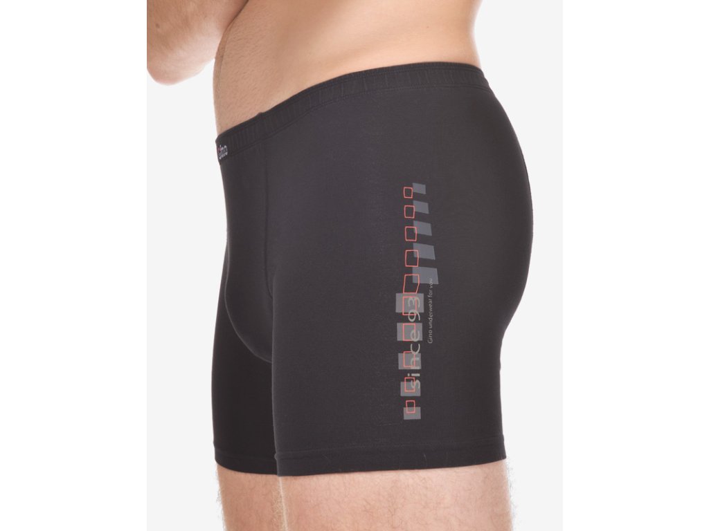 Pánské boxerky s delší nohavičkou, jejich zadní díl je členěný sedlem se dvěma švy. Na boku je solitérním tisk. Jsou kouskem prádla, který se stane favoritem každého milovníka pohodlí a přírodních materiálů. Bavlněný úplet je doplněn o pružná elastanová vlákna, díky kterým je materiál velmi přizpůsobivý a pohodlný.