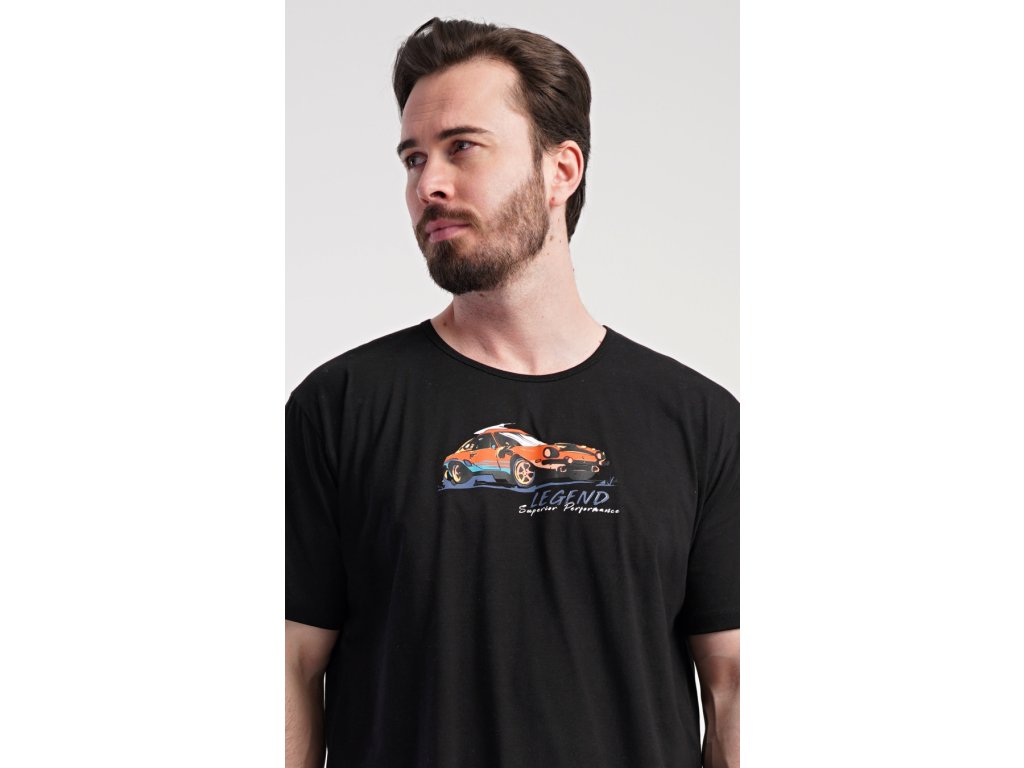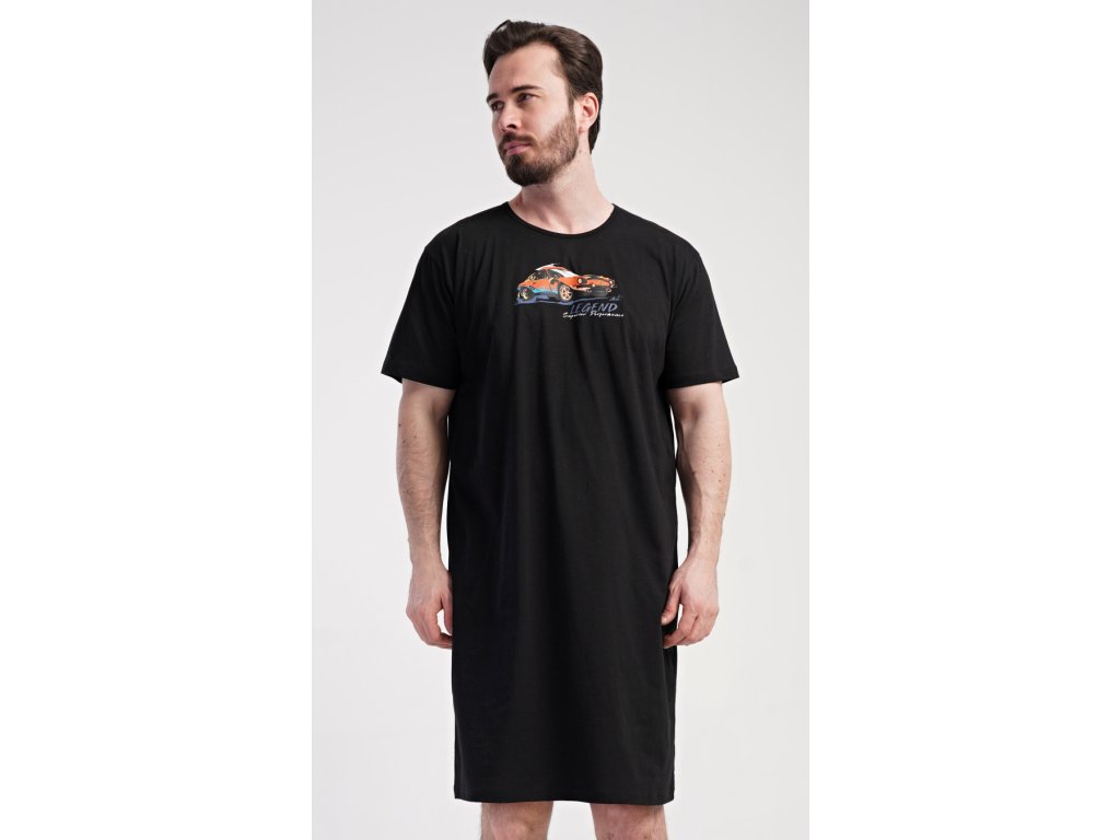 Pánská bavlněná noční košile s krátkým rukávem Legend. Jednobarevná pánská noční košile s kulatým výstřihem a délkou po kolena má na hrudi obrázek závodního auta a nápis 'Legend'. Noční košile je vhodným dárkem pro všechny milovníky rychlých vozů. Použitý materiál s obsahem bavlny 100% je příjemný a poddajný na dotek.